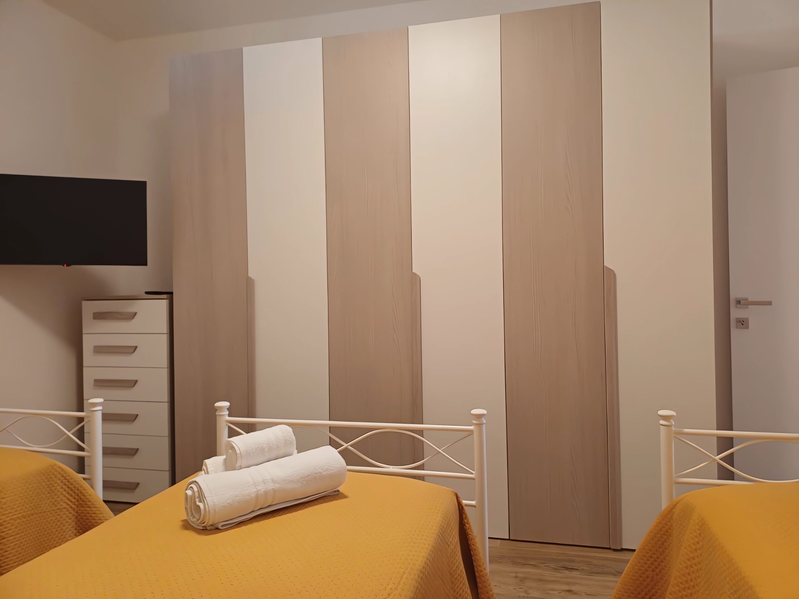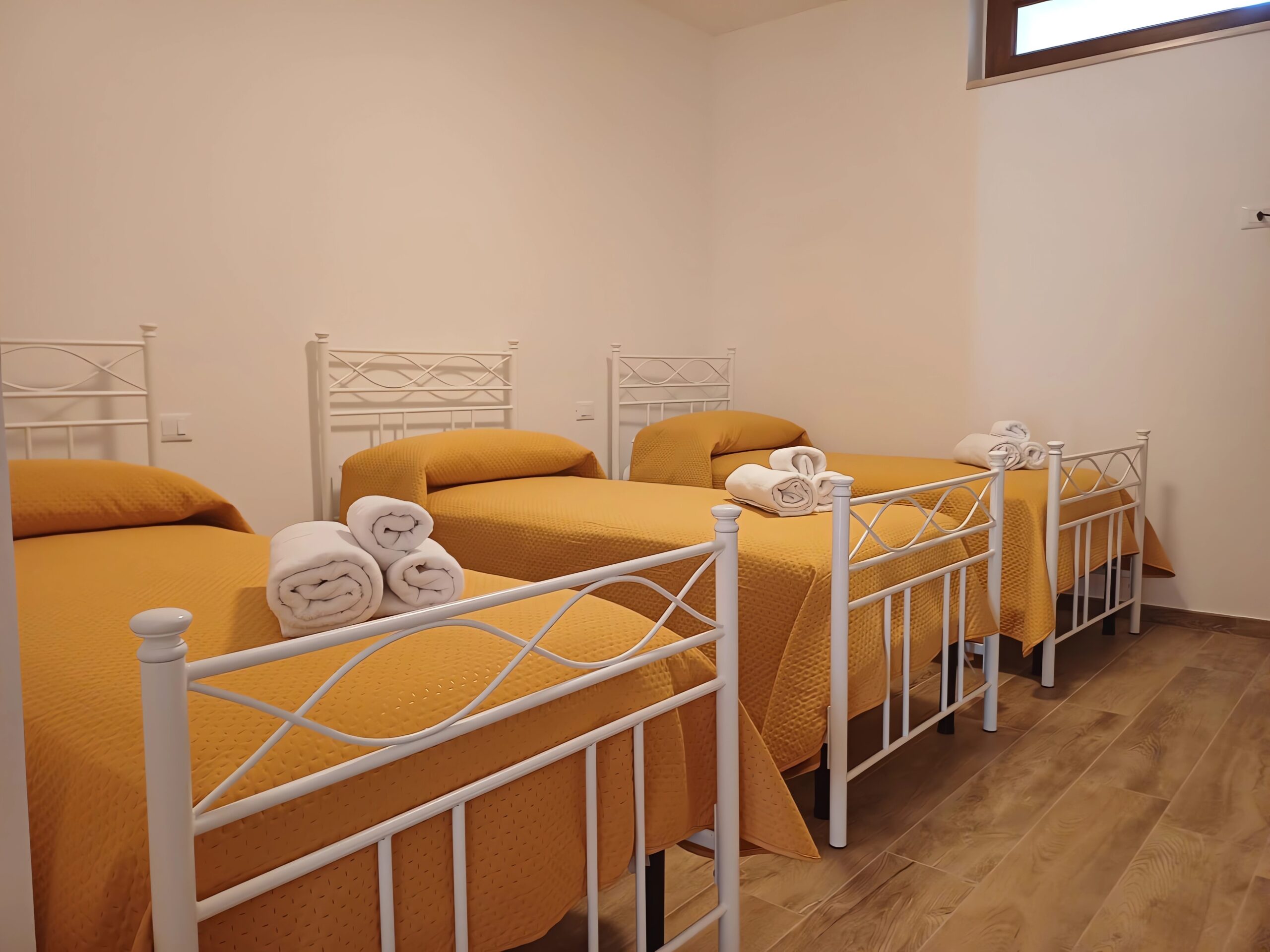 L’appartamento dispone di due camere da letto: una con letto matrimoniale alla francese, l’altra con tre letti singoli. Completano l’alloggio una zona giorno luminosa, una cucina completamente attrezzata, un bagno moderno e una terrazza con vista sul giardino. L’ambiente è curato, pulito e pensato per il relax di famiglie o piccoli gruppi..
